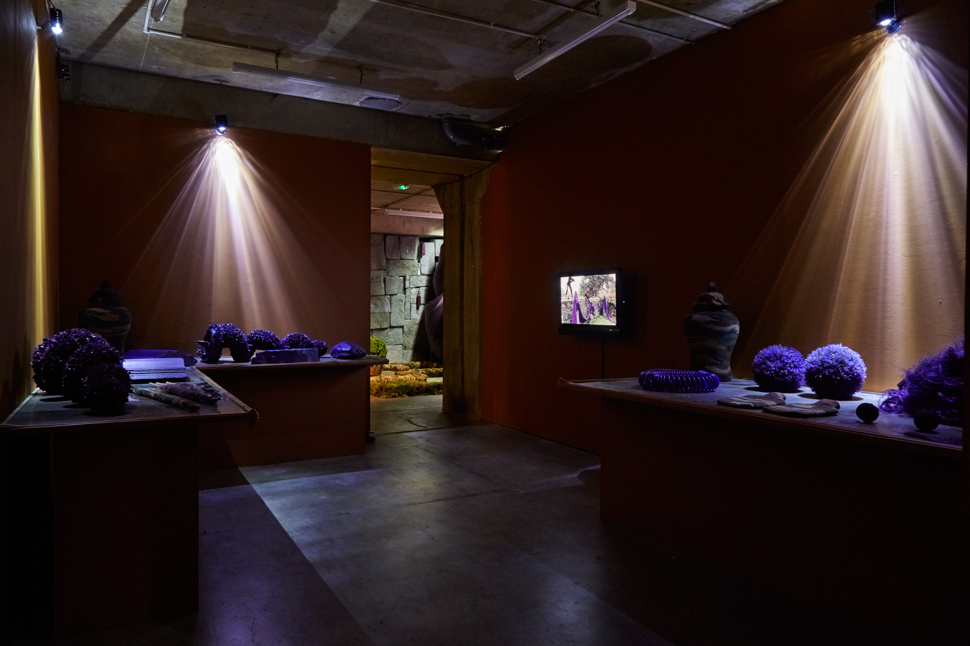 We wanted to create an aimless, wandering feeling where things reveal themselves as you move through, but with a sense of spooky slapstick. Tongue in cheek terror. Excitement and fear are fairly close in feeling. Someone described the exhibition as The Blair Witch Project meets Teletubbies, which we’re happy with.