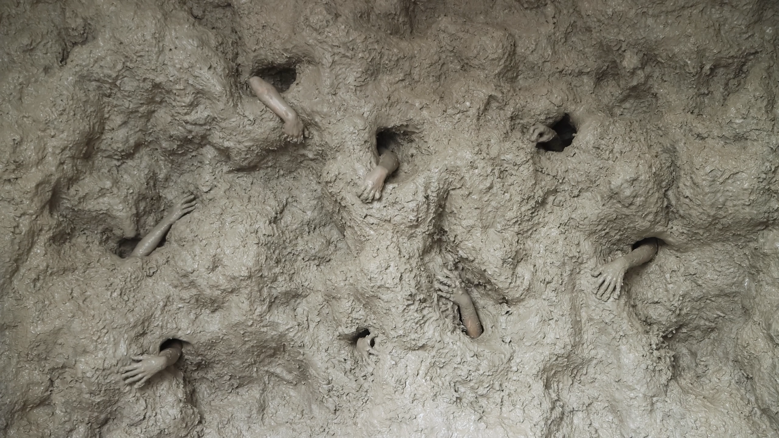 In my videos involving two or more people, such as the recent ‘Screensaver’, the idea of communality and connection between people and earthy material is forged through their covering by a clay mass. So, individual autonomy is subsumed into a larger mass of clay and limbs.