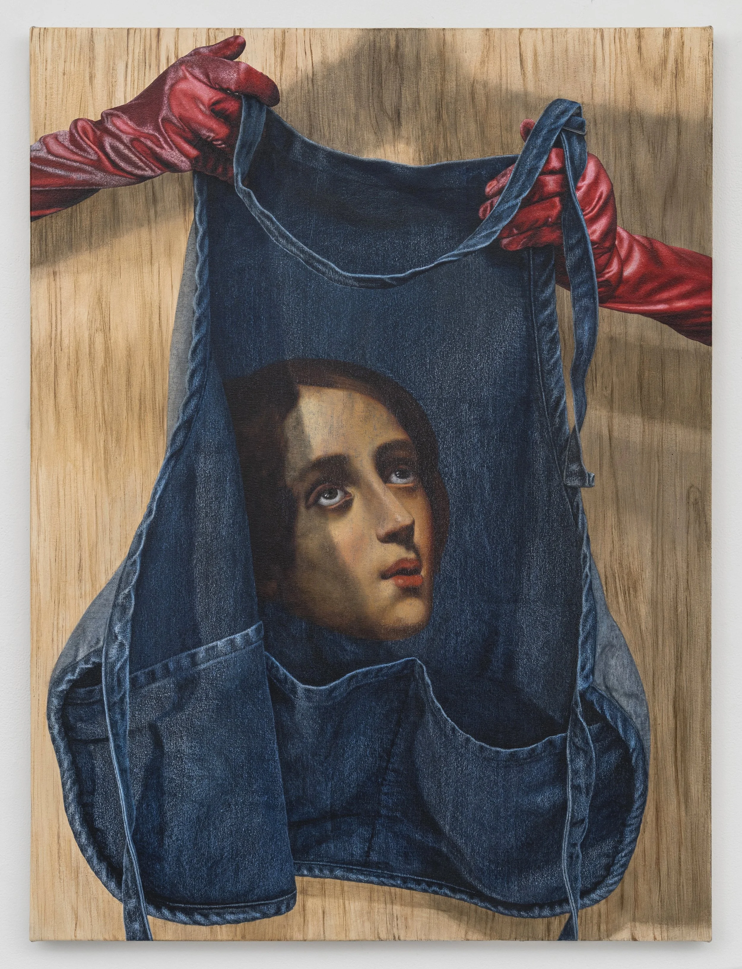 Your paintings often depict the backs of canvases, taped edges, hanging fabrics, and everyday materials like denim or lace rendered with extreme precision. In your solo exhibition at Fredericks & Freiser, why did you choose to focus on these structural or usually hidden elements, and what do they allow you to explore that a more conventional image might not?