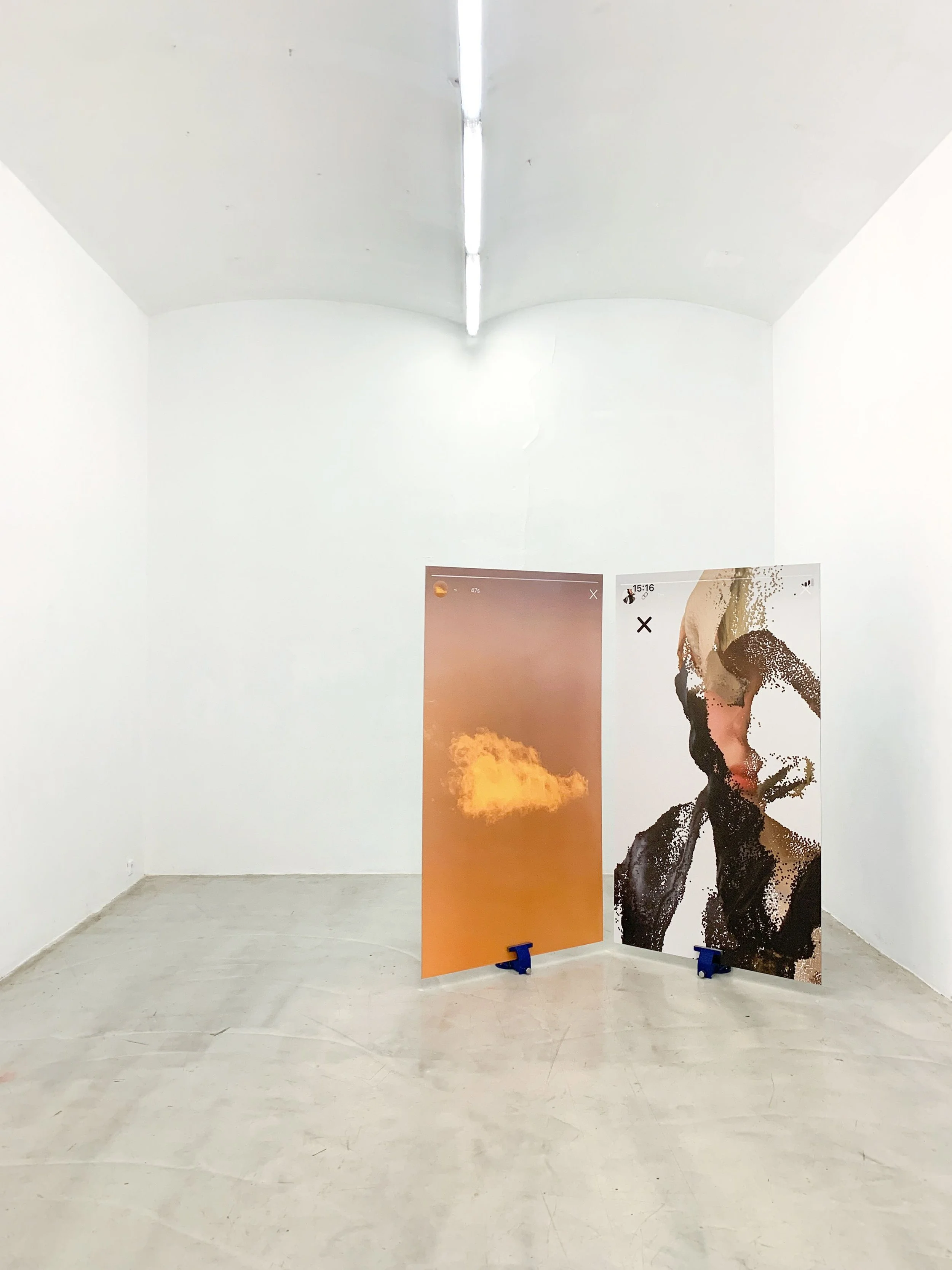I’m an artist and researcher based in London, examining the biopolitical power of Silicon Valley technologies through moving image, installation, and online media. Since finishing my PhD at the Royal College of Art this past January, I’ve spent a lot of time in the studio at Shipton Gallery where I’ve been artist in residence the past few months. I’m currently developing a series of video sculptures for a few upcoming shows in 2026. With a background in photography, I only started working with the medium of moving image when Instagram launched Stories almost ten years ago. I’ve been interested in the way moving image formats operate within online environments ever since. This has entirely transformed my artistic practice, starting with two artist books I published with the independent publishing house Skinnerboox: You I Everything Else in 2020, and 0N0E in 2022. Both books are comprised entirely of screenshots from Instagram Stories and other moving image-based forms of communication unfolding on smartphone interfaces. I began thinking of screenshots as film stills, considering how the phone screen instantly mediates everything from private chats to news reports into an animated and interactive, post-cinematic experience. While my recent works no longer focus on reproducing the explicit aesthetics of social media and digital interfaces, my practice is still developed out of a continuous thinking about, and engaging with, moving image media online.